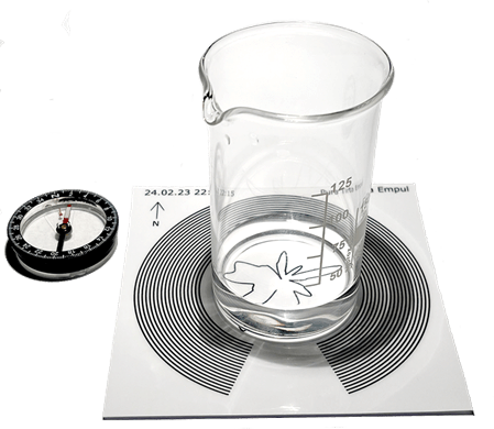 Nachdem man mit Hilfe des Placebogenerators die passende Schablone bestimmt hat, druckt man das Blatt aus, legt es auf eine nichtmetallische Oberfläche und richtet es so aus, dass der Pfeil "N" nach Norden zeigt. Dann befüllt man ein rundes Glas mit dünnem Boden mit ein wenig Wasser (20-40ml) und stellt dieses Glas in den runden Kreis der Schablone. Nach ca. 30 Minuten trinkt man dieses Wasser.